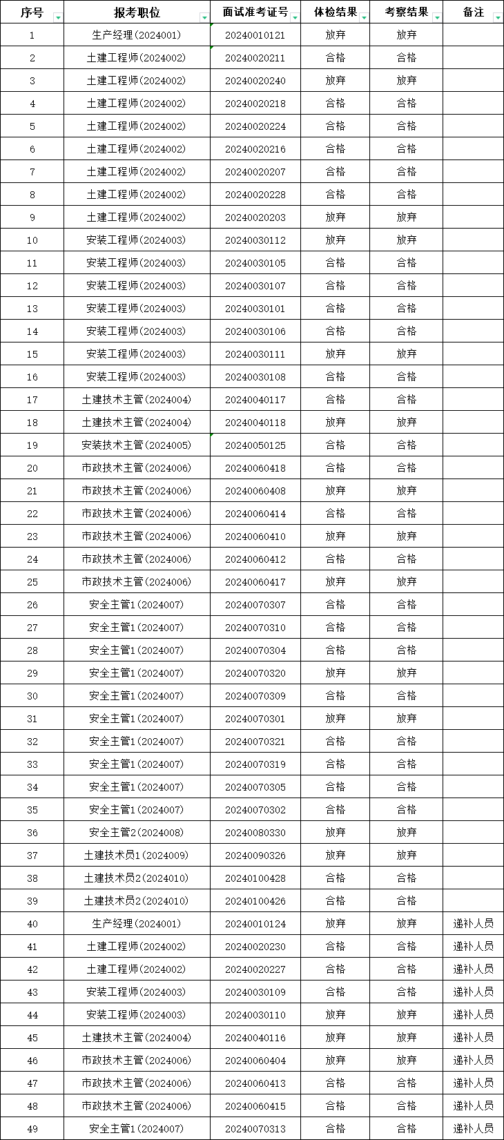 根據《2024年亳州金地建工有限公司外包人員公開招聘公告》相關規定,現將擬入圍對象體檢、考察結果公示如下: