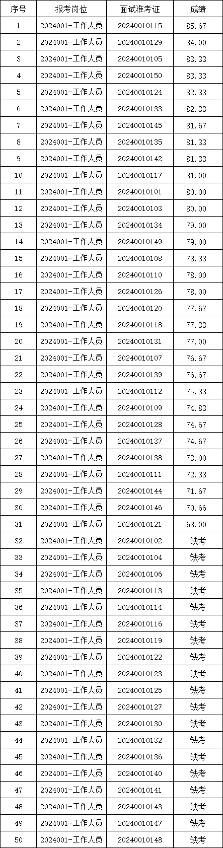 根據《2024年亳州市譙城區希望公益服務中心勞務派遣人員公開招聘》有關規定,現將面試成績予以公示。