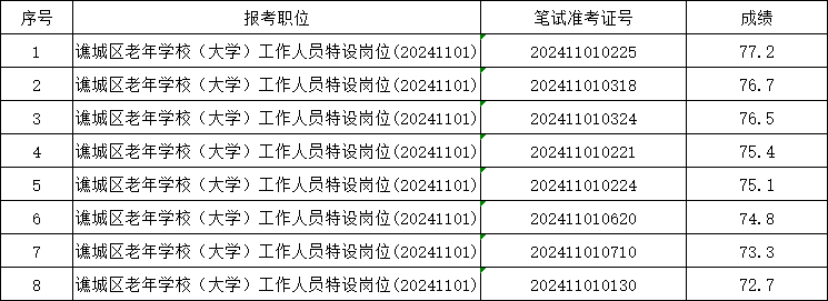 根據(jù)《2024年譙城區(qū)老年學(xué)校(大學(xué))工作人員特設(shè)崗位公開(kāi)招聘》有關(guān)規(guī)定,現(xiàn)將2024年譙城區(qū)老年學(xué)校(大學(xué))工作人員特設(shè)崗位公開(kāi)招聘擬入圍體檢、考察工作有關(guān)事項(xiàng)公告如下: